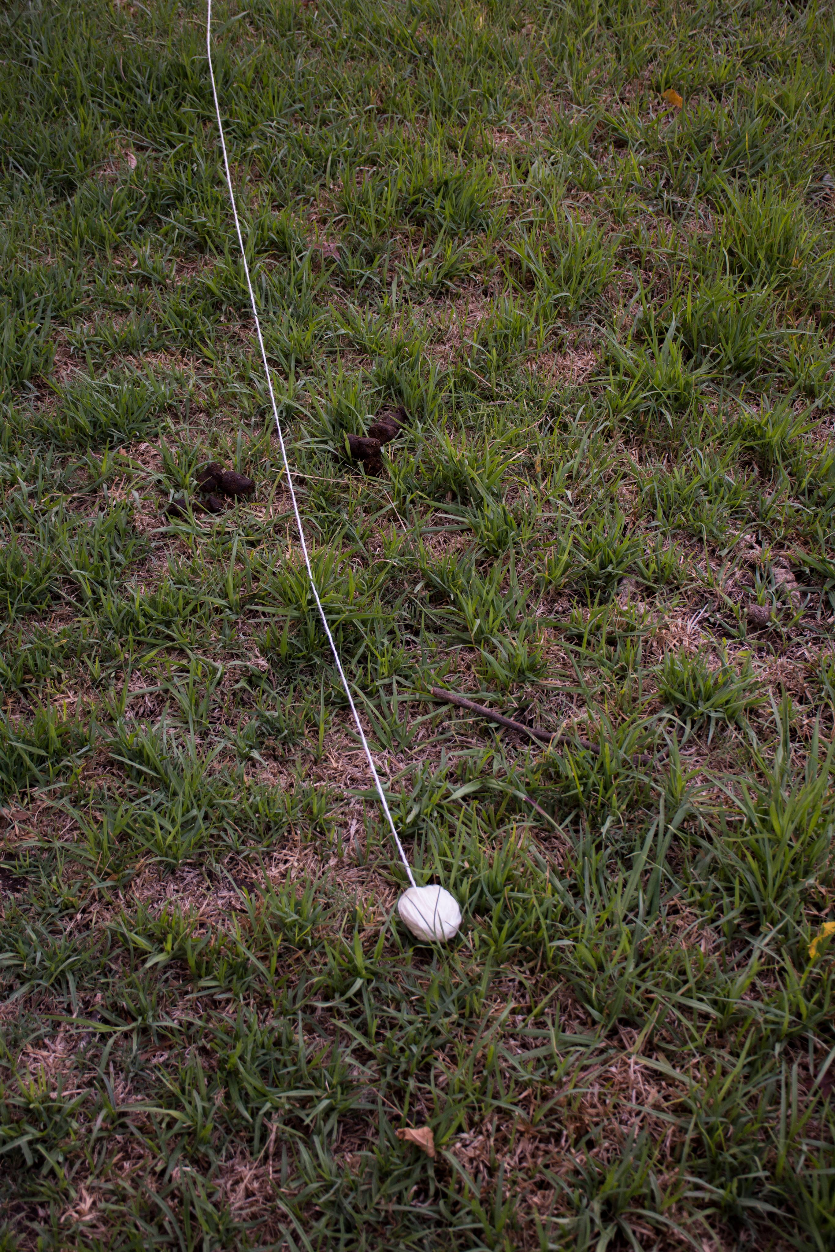 En esta vereda veo un pequeño ovillo de lana blanca. El cordel que se desprende del ovillo se extiende hasta la esquina donde se revuelve sobre sí mismo dibujando un garabato a la sombra de los árboles. A pocos metros de ahí, en la zanja, hay restos de comida, botellas vacías y bandejas descartables de aluminio.